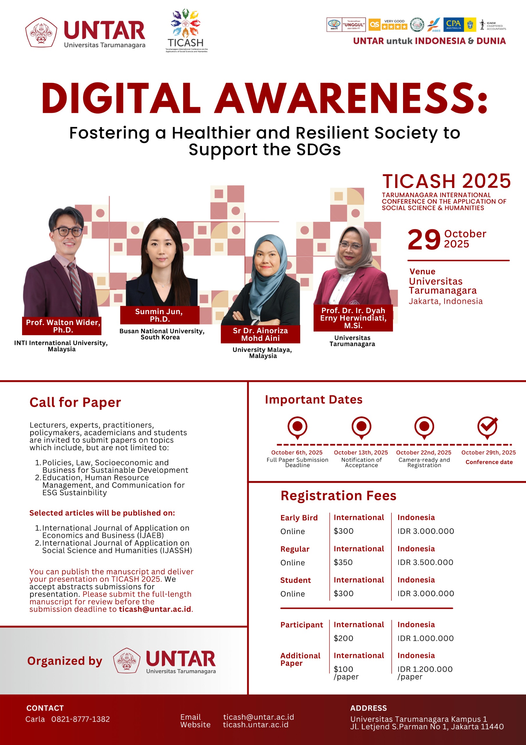 All papers accepted by the TICASH 2025 will be proposed for publication on the followings: